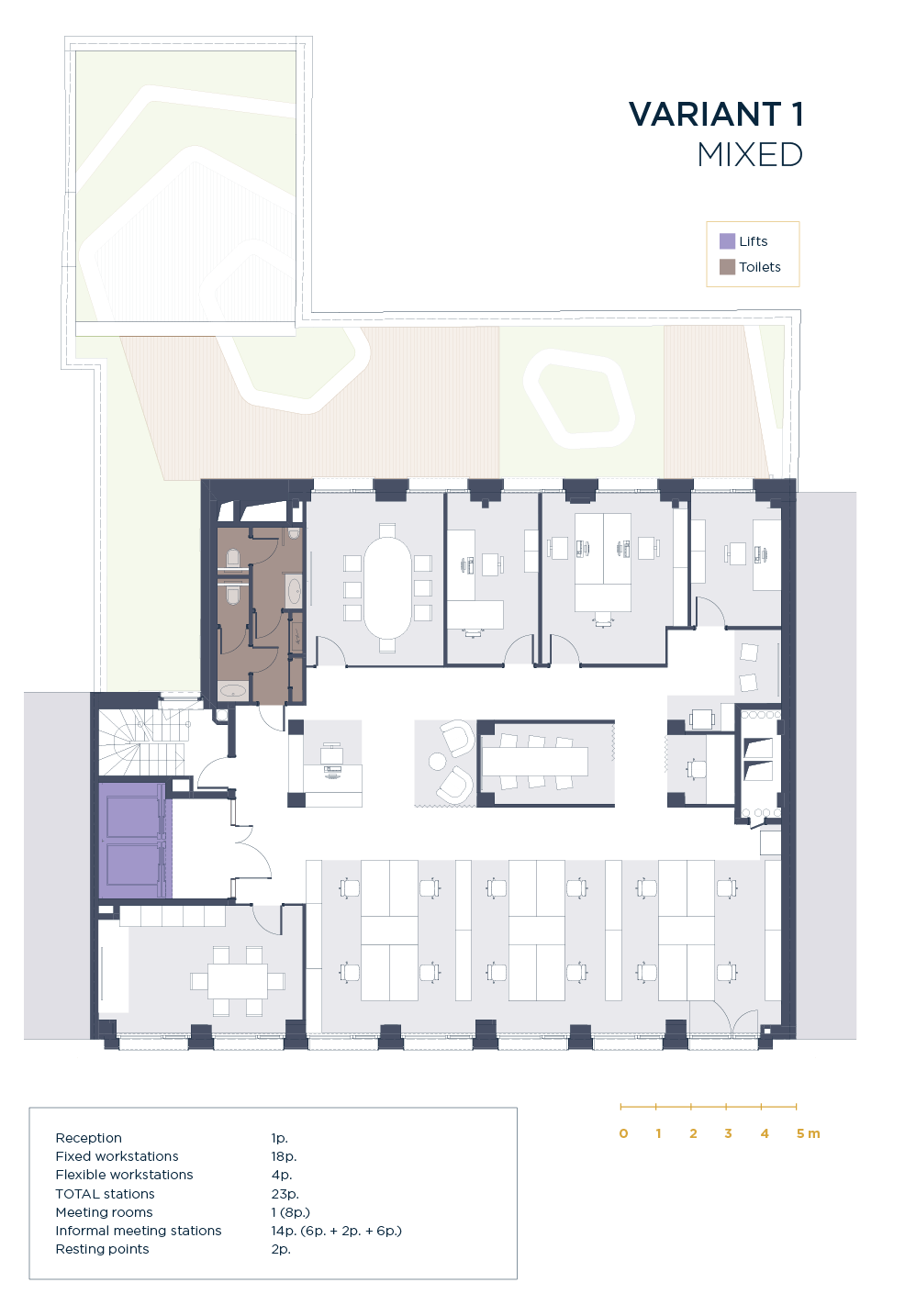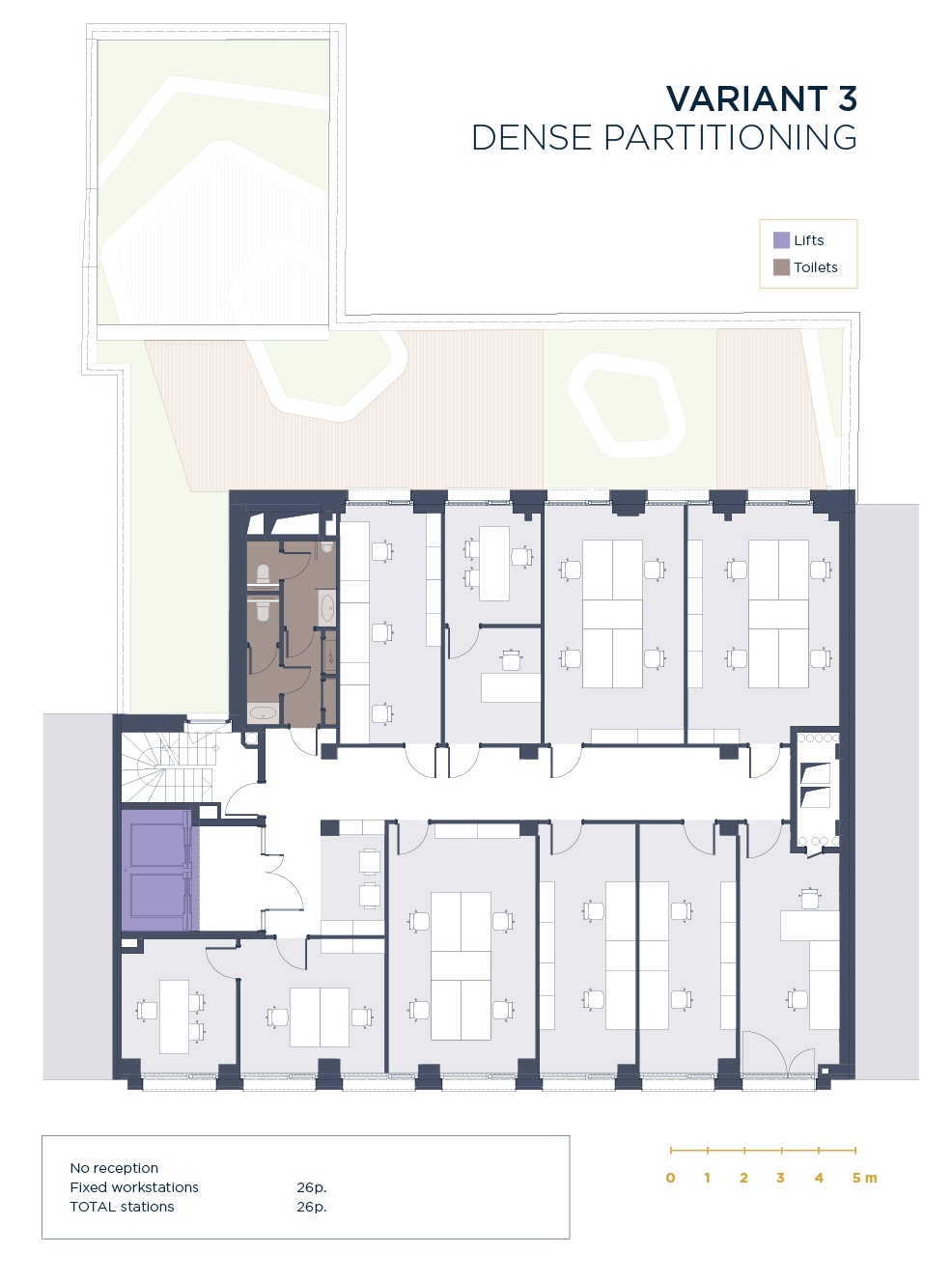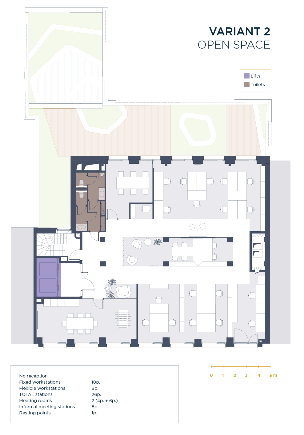 Raised floors with ample technical voids (up to 100 cm locally)